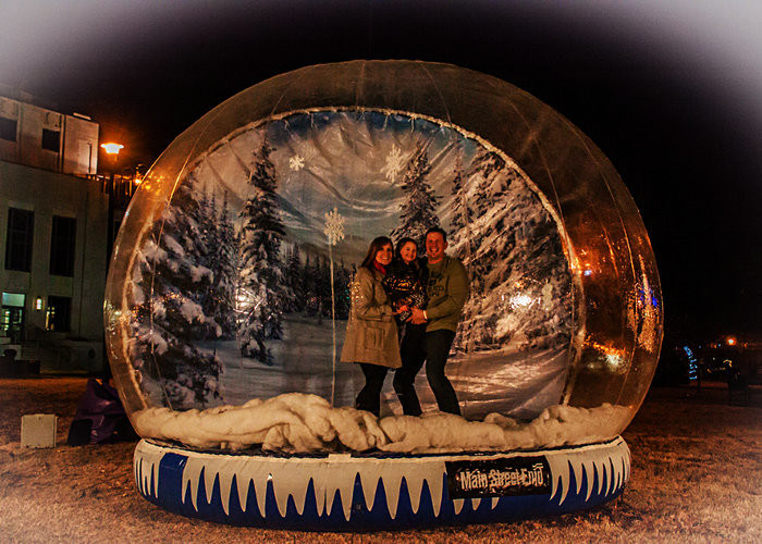 Nasz olbrzymi ludzki śnieżny glob pozwala ludziom wejść do środka, skakać, bawić się, robić zdjęcia lub nawet spożywać specjalny obiad. Tło jest usuwalne; innymi słowy, możesz go usunąć, gdy tego nie chcesz.